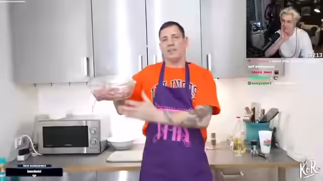 00:48:26Der Stream wechselt zu humorvollen und fiktiven Inhalten. Es wird eine skurrile Geschichte über die Majore der Täuschung aufgenommen, die angeblich die Mondlandung gefälscht haben. Außerdem wird ein abgedrehter Werbespot mit der Figur 'Bob der Baumeister' inszeniert, der aufgrund seines neuen Designs als 'Bastard' bezeichnet wird. Diese Segmente dienen als humorvolle Unterhaltung und zur Abwechslung vom Kochen.