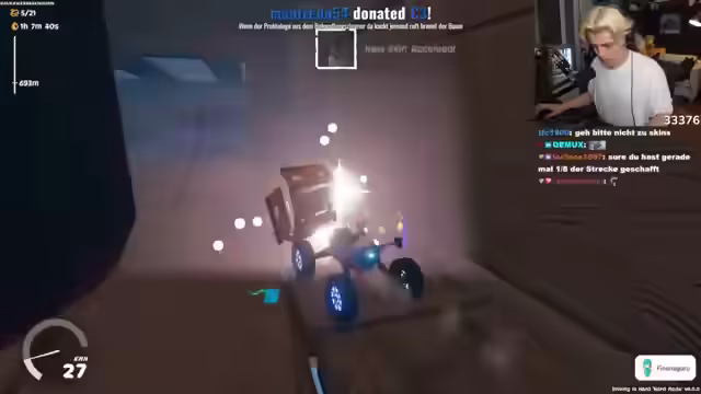 05:14:30Im letzten Drittel des Streams versucht der Streamer, das finale Level des Spiels zu absolvieren. Er fühlt sich im großen Fahrzeug wie eine 'Rampensau' und beschreibt die Fahrt durch die enge Röhre als 'respektlos' und 'krank'. Die Zielgerade erweist sich als äußerst herausfordernd, da er mehrmals stürzt und seine Anstrengungen neu beginnen muss. Sein Ziel, das Spiel heute fertigzustellen, rückt trotz aller Mühen immer weiter in die Ferne.