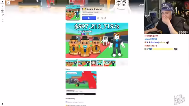00:38:42Der Streamer wechselt das Spiel und startet eine Runde Roblox im Spiel 'Blox Fruits'. Das Ziel ist es, ein Schiff namens 'Wiedergeburt' zu erschaffen, indem man seltene Gegenstände wie Trulimero und Schimpansen-Bananini farmt und die Basen anderer Spieler klaut. Der Stream beschäftigt sich intensiv mit der Spielmechanik, dem Versuch, andere Spieler auszutricksen und den Aufbau einer eigenen Basis.