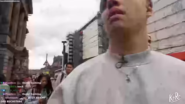 00:08:39Der Tagesplan umfasst mehrere Aufgaben: Zwei T-Shirts für die Mutter besorgen, ein Fußballtrikot für Basti und Outfit für den morgigen Dudelsack-Auftritt. Am interessantesten: Ein Zuschauer ist Dudelsacklehrer und hat spontan einen Termin für morgen in Aussicht gestellt. Streaming-technisch bereitet der Streamer Kopfschmerzen, da die Kamera von Schmutz belegt ist. Die Reinigung gestaltet sich schwierig, nachdem ein Gegenstand auf das Wohnmobil geworfen wird.