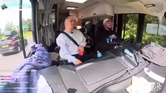 09:41:52Zum Ende des Streams unterhalten sich die Streamer über die Rückfahrt zum Campingplatz. Sie spielen vielleicht ein Spiel im Auto und stellen fest, dass noch eine Stunde Fahrt vor ihnen liegt. Gleichzeitig wird eine absurde Anekdote über den Manager eines Restaurants erzählt, nachdem eine unbezahlte Rechnung angesprochen wurde. Der Stream endet mit der Erwähnung eines durchwachten Tages und der Freude an der bevorstehenden Fahrt, wobei sie sich auf eine weitere Episode der Reise freuen.