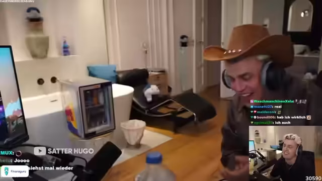 00:38:08Der Streamer vergleicht verschiedene deutsche Städte und äußert sich kritisch über München, das er als seltsam und unattraktiv empfindet. Er schwärmt hingegen von Köln und stellt sich vor, wie die Stadt aussehen würde, wenn sie nicht durch Kriege zerstört worden wäre. Er gibt zu, dass er fast nie Zeit für Serien hat, da er es als langweilig empfindet, sich für einen Marathon vorzubereiten. Die Unterhaltung des Streams ist geprägt von spontanen Anekdoten, wie dem Erlebnis mit einem Lieferanten in Barcelona, der ein LTE-Alarm-Signal ausgelöst hat.