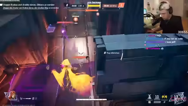 06:16:57Der Streamer erwähnt, dass sein Freund Coco Korko bald zum Stream stoßen wird, nachdem sein eigenes Turnier beendet ist. Sie planen, als Team in den Ranked-Modus zu wechseln, nachdem ein Warm-up-Spiel im Quickplay-Modus absolviert wurde. Das Spiel ist ein Payload-Schiessen, bei dem das Team einen Punkt verteidigen muss, während es gleichzeitig versucht, den eigenen Payload voranzutreiben. Die Kommunikation mit den Teamkollegen ist teilweise schwierig und unkoordiniert, was das Spiel erschwert.