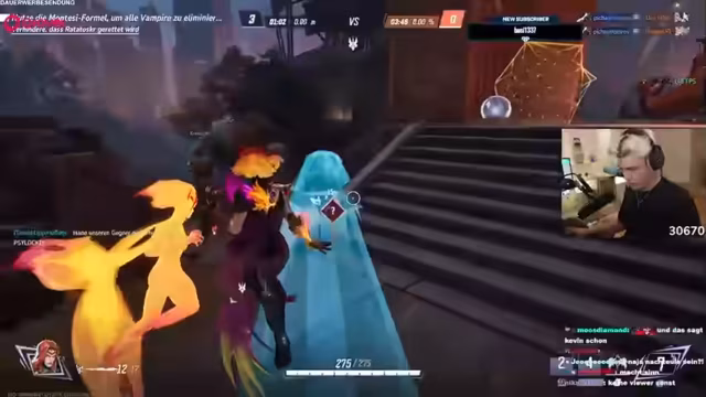 02:30:23Die Frustration über das Turnier gipfelt in einer persönlichen Drohung. Ein Streamer kündigt an, er werde persönlich beim anderen vorbeikommen und dessen 'Arsch langsam wachsen', sollten sie gegen die nächsten Gegner Feister und NoRisk nicht gewinnen. Dies verdeutlicht den hohen persönlichen Einsatz und den imm Wettbewerbsdruck, unter dem die Streamer stehen. Gleichzeitig äußert er sein Misstrauen gegenüber den vorgegebenen Teamzusammenstellungen.