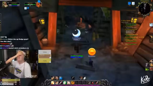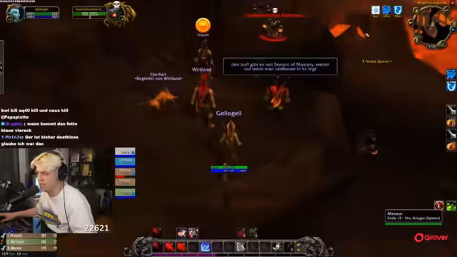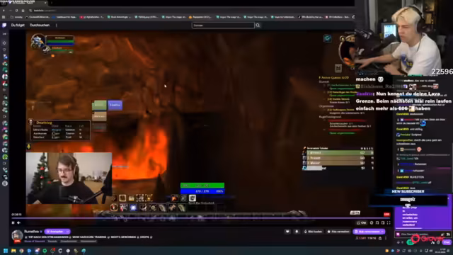 03:36:21Dominik, auch bekannt als Reeze, kam dem Call bei und wurde über den 'dümmsten Tod' in WoW informiert. Es wurde erklärt, dass der Horde-Charakter, mit dem sie zuvor gelevelt hatten und der gestorben war, weitergespielt wurde. Der Tod in der Lava geschah, als versucht wurde, Wieland zu zeigen, wie viel Schaden die Lava im Dungeon Ragefire macht – 606 Schaden, was zu einem sofortigen Tod führte. Dominik fand den Tod fast genauso dumm, wenn nicht sogar dümmer als seinen eigenen. Die Gruppe beschloss, als Zwerge weiterzuspielen, wobei Wieland bereits dabei war. Dominik nahm automatisch Quests an, was als 'geil' empfunden wurde, da es den Prozess vereinfachte. Die Spieler bereiteten sich auf weitere Quests in Goldhain vor.