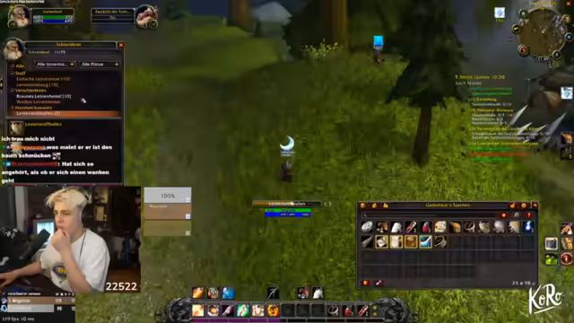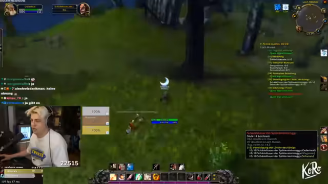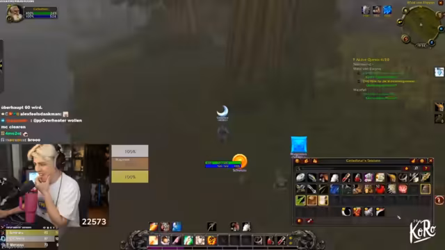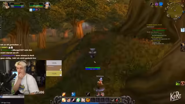 09:13:01Der Priester lernt neue Zauber, darunter "Physischer Schrei", der Gegner für acht Sekunden zufällig herumlaufen lässt, ohne anzugreifen, und "Inneres Feuer", ein Buff, der 300 Rüstung verleiht, bis man 20 Mal geschlagen wurde oder 10 Minuten vergangen sind. Die Streamer diskutieren die Belegung der Hotkeys für diese neuen Fähigkeiten, wobei sie sich für eine Mischung aus nummerischen Tasten und Sondertasten wie X, C und V entscheiden. Es wird auch über die Möglichkeit gesprochen, Add-ons zu nutzen, die eine bessere Übersicht über die Zauberlevel bieten. Die Streamer verzaubern ihre Ausrüstung, um zusätzliche Gesundheit zu erhalten, und betonen die Wichtigkeit von Berufen, um im Spiel voranzukommen und nicht zu sterben. Es wird die Frage aufgeworfen, ob Doping im Event erlaubt sein wird, was jedoch als zu spezifisch abgetan wird.
