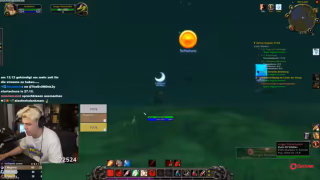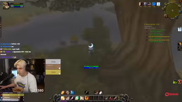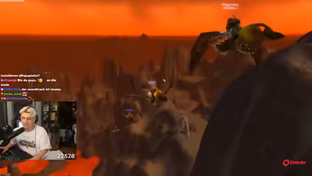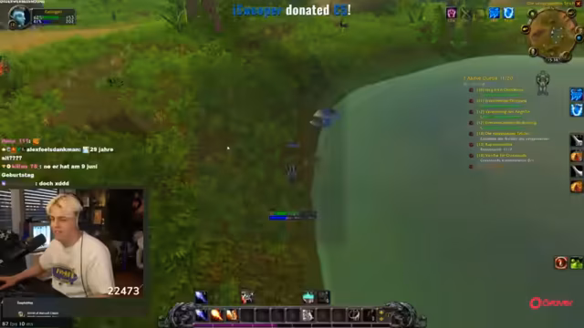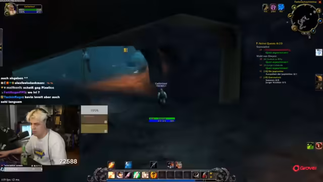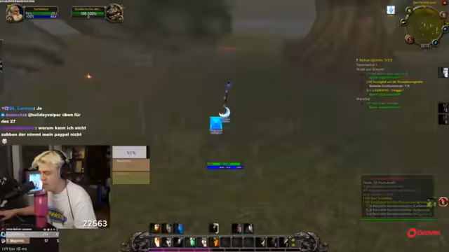 08:51:21Nach acht Stunden WoW-Spielzeit bemerken die Spieler eine zunehmende geistige Erschöpfung und Konzentrationsschwäche. Ein Spieler äußert Frustration über anhaltende Audioprobleme mit seinem Setup, die trotz gleicher Hardware wie die anderen Spieler auftreten und ihn an den Rand der Verzweiflung bringen. Er vermutet ein "Skill-Issue" oder ein Problem mit der Software. Die Gruppe setzt ihre Quest fort und ist auf der Suche nach den letzten benötigten Schamanen. Es wird eine bevorstehende Ankündigung bezüglich der Fraktionswahl für den 12. Dezember erwähnt. Die Spieler stoßen auf einen Level-20-Mob im Wasser, was eine gefährliche Situation darstellt und sie zur Vorsicht mahnt.