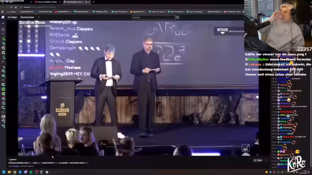 00:16:43Der Streamer kritisiert das Spiel Bierpong als das beschissenste Spiel überhaupt. Er spricht über die Outfits des Abends und lobt Tamina, Meryl, Masha und Maluna für ihre stylischen Looks, wobei Maluna wie eine Fee ausgesehen habe. Er scherzt, dass die Mädels zu viel Aufwand in ihre Outfits stecken würden, während er selbst nur einen Hugo Boss Anzug trug. Bei den Männern fand er Elisas und Wielands Outfits gut. Er schlägt vor, Wieland zu überreden, sich zwei Ohrringe zuzulegen, da er der Meinung ist, dass Wieland diese mit Selbstvertrauen tragen könnte. Er reflektiert über die gewonnenen Awards für 'bestes Duo' und 'bestes mehrtägiges Event', wobei er betont, dass ihm die Auszeichnungen nicht übermäßig wichtig seien und er sogar damit gerechnet habe, dieses Jahr keinen Award zu gewinnen. Er gönnt die Awards besonders den kleineren Creatorn, da diese für sie eine größere Bedeutung hätten, und erwähnt einen Gewinner vom 'Flohmarkt-Chat'. Er kritisiert die Community von Mali, die 'Free Marley'-Rufe startete, als Mali keinen Award gewann. Er fand die Verteilung der Awards insgesamt gut, auch wenn er die Kategorie 'Average Subs' für Quatsch hielt. Er erwähnt, dass Syndica zwei Awards gewonnen hat, was er ebenfalls cool findet.