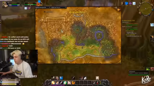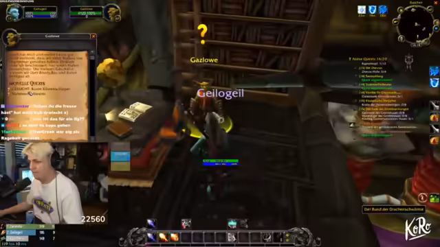 05:27:01Die Spieler diskutieren über die Effizienz von Quests, insbesondere wenn sie zu dritt unterwegs sind und die Erfahrungspunkte im Verhältnis zum Zeitaufwand als gering empfunden werden. Eine Quest, die 850 XP verspricht, wird als potenziell zu zeitaufwendig für eine Dreiergruppe eingestuft. Es wird überlegt, bestimmte Quests zu überspringen, um schneller aus den Anfangsgebieten herauszukommen und Konfrontationen mit anderen Spielern zu vermeiden. Die Gruppe entscheidet sich, die aktuelle Quest abzubrechen und sich stattdessen auf den Elite-Mob Hogger zu konzentrieren. Dabei werden auch Inventarprobleme und das Management von Quest-Items besprochen, da einige Items nach Abbruch einer Quest automatisch entfernt werden.
