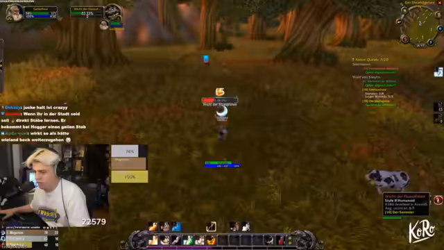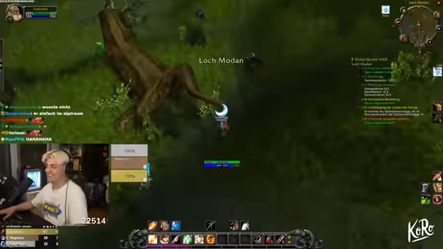 05:31:17Die Gruppe bereitet sich auf den Kampf gegen Hogger vor, einen legendären Elite-Mob in ihrem Gebiet. Es wird diskutiert, wie der Kampf am besten angegangen werden soll, wobei Vorsicht geboten ist, da ein Tod nicht ausgeschlossen wird. Die Strategie sieht vor, dass ein Spieler zuerst Aggro aufbaut, bevor die anderen Schaden verursachen. Es wird auch über die Möglichkeit gesprochen, nach Sturmwind zurückzukehren, um sich einen Spot zu sichern, der die Aggro-Kontrolle verbessert, dies wird jedoch als unnötig abgetan. Die Spieler sammeln noch benötigte Quest-Items von Gnollen, bevor sie Hogger angreifen. Ein Add-on, das Elite-Mobs in der Nähe anzeigt, wird erwähnt, was die Suche nach Hogger erleichtert.