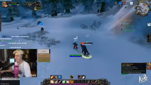 07:57:43Während des Streams beschäftigen sich die Streamer intensiv mit dem Gameplay von WoW, insbesondere mit dem Management von Aggro und Bedrohung. Sie diskutieren verschiedene Attacken und Fähigkeiten, um die Aggro der Gegner zu kontrollieren und zu verhindern, dass sie unerwünschte Mobs anziehen. Es werden Strategien besprochen, wie man mit durchgehenden Attacken umgeht und wie man die Bedrohungsanzeige richtig interpretiert. Die Streamer navigieren durch verschiedene Gebiete und achten darauf, Mobs in ihrem Level zu bekämpfen, um nicht überfordert zu sein.