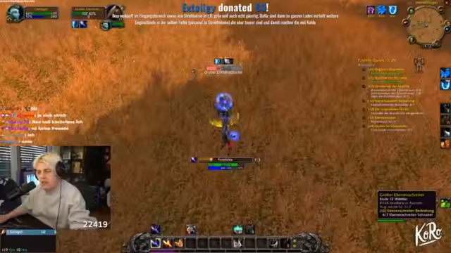 04:25:21Die Spieler arbeiten daran, ihre verbleibenden Quests abzuschließen, darunter das Töten von 'Streunern' und 'jungen Waldbären', um eine volle Questleiste zur Abgabe zu haben. Die Befriedigung, Aufgaben in Videospielen abzuschließen, wird mit der Motivation im echten Leben verglichen. Eine Kiste wird gefunden, und die Spieler würfeln um den Inhalt, wobei eine Donnerbüchse und eine Riesenschere zur Debatte stehen. Es wird auch über die Monetarisierung in World of Warcraft gesprochen, insbesondere über den Kauf von kosmetischen Gegenständen und die Reaktionen der Community darauf, wie das Entfernen des 'Spucken'-Emotes aufgrund von Belästigungen gegenüber Spielern mit gekauften Mounts. Die Gruppe plant, weitere 'Streuner' und 'Sammler' zu töten, um mögliche Quest-Drops zu erhalten und ihre Erfahrungspunkte zu maximieren, auch wenn dies bedeutet, mehr als einen Gegner gleichzeitig zu bekämpfen.