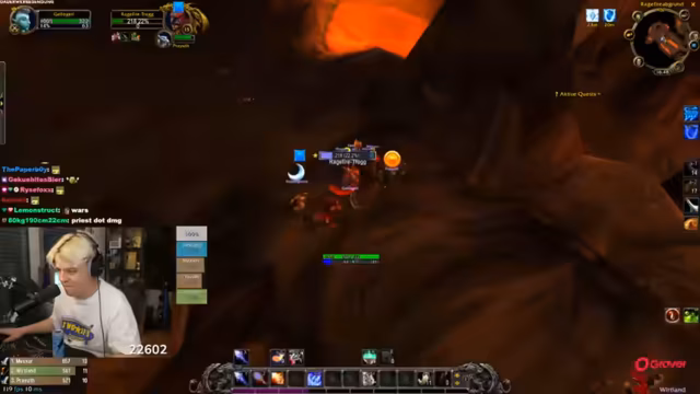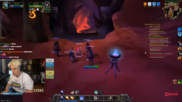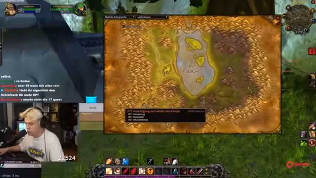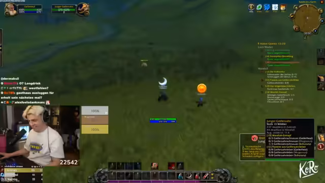 01:36:53Der Streamer spielt Aufgaben und Quests in World of Warcraft, nachdem er bereits zwölf Briganten und sechs Kanoniere eliminiert hat. Er wird gefragt, warum er solo zu einer Level 16 Quest geht, was als nicht tief (not deep) bezeichnet wird. Der Streamer nimmt dann Veränderungen in der Gruppe vor und geht in den ersten Dungeon namens Feuerschlund, wobei ein Tank benötigt wird. Es wird humorvoll über die Schwierigkeiten mit der Gruppensuche gesprochen und ein Level 14 Krieger wird für den Dungeon eingeladen.