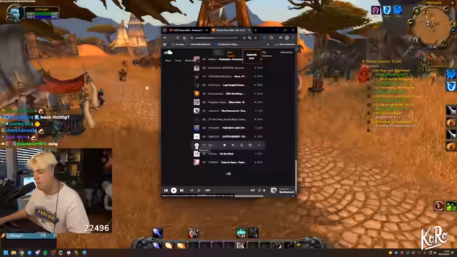 08:10:43Es kommt eine Diskussion über den Song "Oh, komm, jaul mich an" von Zartmann auf, der angeblich der meistgestreamte Song des Jahres in Deutschland sei, mit 140 Millionen Plays. Die Spieler spekulieren über den Einfluss von TikTok und anderen Faktoren auf den Erfolg des Songs. Parallel dazu wird über Spielmechaniken gesprochen, insbesondere über das Looten von Ressourcen wie Kräutern und Erzen, bei denen man mehrmals an einer Quelle abbauen kann. Ein Spieler bemerkt, dass er bei längerem Spielen "outzone", was die Konzentration beeinträchtigt. Sie beschließen, keine Mobs zu töten, die höher im Level sind als sie selbst, um unnötige Risiken zu vermeiden.