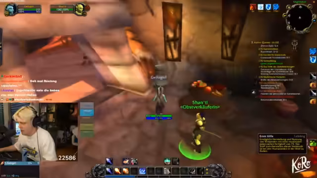 07:00:57Die Gruppe diskutiert, ob ihnen das Leveln mit der Horde oder der Allianz mehr Spaß gemacht hat, wobei die Allianz aufgrund der Gebietsgestaltung, Musik und Atmosphäre als klarer Favorit hervorgeht. Sie betreten eine Höhle, um Quests zu erledigen, und überlegen, ob sie zuerst alle Quests annehmen sollten. Die Spieler ziehen mehrere Gegner gleichzeitig, um effizienter zu leveln, und freuen sich über den schnellen Fortschritt. Es wird die Komplexität von Guides besprochen, wobei ein Spieler eine „Guide für die Guide“ benötigt. Die Gruppe scherzt über die Risiken des Unterstadt-Elevators der Horde. Ein Kampf gegen mehrere Gegner wird erfolgreich gemeistert. Ein Spieler besiegt einen Level-2-Priester namens „Geiler Rahil“ im Duell, was zu humorvollen Kommentaren über dessen sofortiges und permanentes Ausscheiden aus dem Spiel führt. Die Gruppe ist überrascht, dass sie kein Ohr als Trophäe erhält.