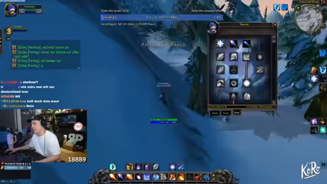 00:05:26Der Stream beginnt mit einem enthusiastischen Willkommen nach einer mehrtägigen Abwesenheit. Der Streamer erzählt von seinem Winterurlaub, bei dem viel Snowboarden betrieben wurde, inklusive fortgeschrittener Tricks wie 360s, Backflips und Frontflips. Bedauerlicherweise konnte keine Kamera dabei sein, um die Momente festzuhalten. Er geht auf den Fortschritt im Spiel World of Warcraft ein, wo Freunde ihm das Farming von Ressourcen abgenommen haben, was ihm enorme Zeitersparnis bei der Level-Up-Prozess beschert hat.