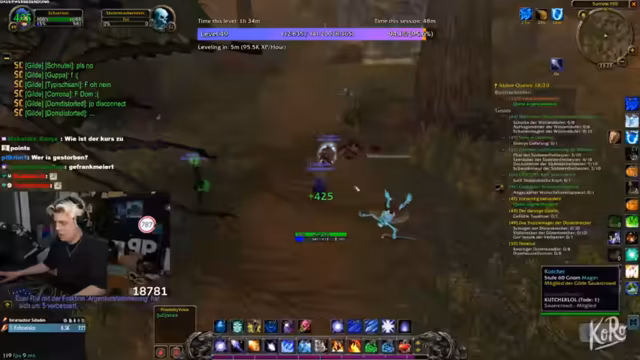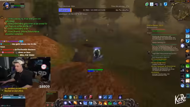 06:46:33In der finalen Phase des Levelns kommt es zu kleineren Rückschlägen, wie einem verpassten Blizzard-Zauber oder einem Disconnect eines Spielers, der wertvolle Zeit kostet. Der Streamer bleibt jedoch konzentriert und zielt darauf ab, das Ziel zu erreichen. Gleichzeitig wird über ein potenzielles AFK-Farming in einer anderen Zone (zwischen Dunkelküste und Winterspring) gesprochen, um für zukünftige Projekte vorbereitet zu sein. Der Ton bleibt trotz der Anspannung locker und humorvoll.