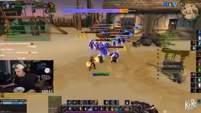 08:48:30Der Streamer beginnt nun, einen Test-Pull im Troll-Dorf durchzuführen, um die Strategie zu demonstrieren. Er führt die Zaubersprüche wie 'Feuerblitz Rang 1' und 'Blizzard Rang 1' vor und erklärt präzise, wie er die Gegner aggro zieht und positioniert. Er gibt spezifische Tipps, wie man den Pull tight halten kann und welche Fehler man vermeiden soll, wie z.B. zu viele Gegner auf einmal zu ziehen. Es wird deutlich, dass dieser Farming-Spot viel Präzision und Wissen über die Spielmechaniken erfordert, um effizient zu sein und nicht zu sterben.