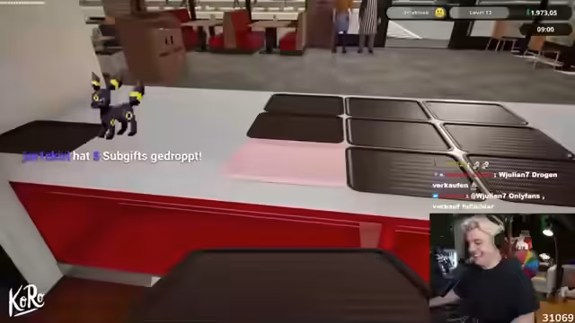 06:14:05Vor dem offiziellen Start des Tages werden logistische Vorbereitungen getroffen. Der Streamer experimentiert mit der Kameraeinstellung, um ein wärmeres und gemütlicheres Licht zu erzeugen, und gibt an, dies am nächsten Tag weiter zu optimieren. Die Arbeitsaufteilung wird neu organisiert, mit der Absicht, gemeinsam einen perfekten Tag zu gestalten und alle Kunden zufriedenzustellen. Es wird eine Bestellung für Zutaten wie Eisbecher, Getränke, Patties, Gurken, Ketchup und Brötchen aufgegeben, um für den erwarteten Andrang gewappnet zu sein. Das Ziel ist klar, wie ein Kommentar im Chat bestätigt: 'Wir öffnen die Türen, wir gehen rein, und wir werden hier rausgehen mit 100% Prozent glücklichen Kunden.'