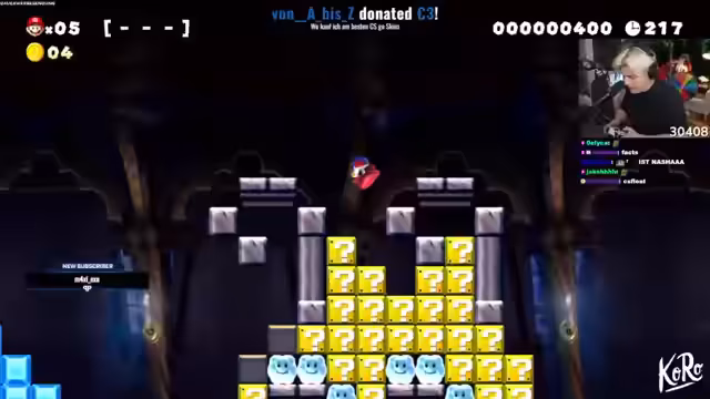 03:13:54Die Kämpfen gegen aufwendige Level setzen sich fort, wobei der Streamer über exzellentes Level-Design aus Mexiko und Spanien spricht. Er muss sich durch komplexe Level wie Ghost Houses und Action-stufen kämpfen und verliert dabei mehrere Leben. Ein Hauptaugenmerk liegt auf der extrem schwierigen Beherrschung des P-Switch-Jumps, für den er das Tutorial von Terry als schlecht erklärt kritisiert und nach einer perfekt getimten Bewegung sucht, die nur mit exaktem Timing von 3 Frames möglich ist.