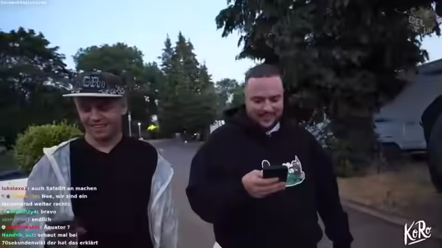 11:10:28Auf dem Heimweg entscheiden sich die Streamer für eine spontane Challenge: Sie wollen ohne Navi nach Hause finden und sich dabei am Fluss orientieren. Diese Idee wird als 'todeschillig' empfunden, obwohl sie sich Sorgen machen, falls sie sich verlaufen sollten. Während des Spaziergangs kommen ihnen immer wieder Paprika-Chips hoch, was zu Vergleichen mit einer Kuh führt. Sie diskutieren über die Qualität eines zuvor getrunkenen Himbeer-Ananas-Ciders und überlegen, ob eine nahegelegene Bäckerei das Frühstück für den Pub liefert. Tim und Dominik müssen kurz urinieren, wobei Miguel gebeten wird, nicht zu filmen, um eine Sperre zu vermeiden. Es wird auch die Idee geäußert, mit Mitch, dem Mitarbeiter des Pubs, eine Mentalisten-Nummer zu versuchen.