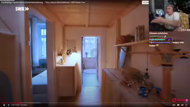 01:15:05Anfangs gab es Bedenken der Familie bezüglich des Zusammenlebens zu fünft in einer Einzimmerwohnung. Die Entscheidung wurde jedoch gemeinsam mit den Kindern getroffen. Es wird betont, dass es sich um sehr sympathische und smarte Menschen handelt. Die Kinder durften die meisten ihrer Sachen mitnehmen, wobei auf eine platzsparende Aufbewahrung geachtet wurde. Im Flur wurde eine komplette Ebene für die Kinder eingebaut, die als Kinderzimmer dient. Im oberen Bereich schlafen die Kinder. Es wird die Frage aufgeworfen, wie es ist, mit Geschwistern in einem Zimmer zu wohnen, insbesondere in der Pubertät, da ein Rückzugsort fehlt. Es wird kurz auf das Thema Sex eingegangen. Es gibt viele Spielsachen und Kuscheltiere. Die Wohnung ist sehr süß eingerichtet und es findet alles statt, was in Familien so üblich ist. Da kein Platz für einen Schrank vorhanden war, werden Jacken und Taschen hinter Vorhängen versteckt. Eine aufgeräumte Kiste unter dem Schrank und eine Ecke in der Küche werden gezeigt, um alles zu verstecken. Über dem Bad befindet sich eine kleine Luke für Akten. Erwachsene suchen sich immer einen Ort, wohin sie sich zurückziehen können.