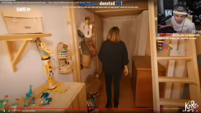 00:56:41TikTok Pro ist kein Geldbringer, sondern ein strategisches Werkzeug. Es stärkt das Image, signalisiert Verantwortung an die EU, hält Reguliere vom Hals und schützt so das Hauptgeschäft mit Werbung und Shopping, während trotzdem Daten gesammelt werden. Er schaut sich ein Video über eine fünfköpfige Familie an, die in einer Einzimmerwohnung lebt. Er findet das Video ein bisschen wie KI-generiert und fragt sich, ob das wirklich eine Einzimmerwohnung ist. Er hat im Intro schon sechs Zimmer gesehen. Er findet die Kinderzeichnungen scheiße und sagt, dass das easy in einem Horrorfilm sein könnte.