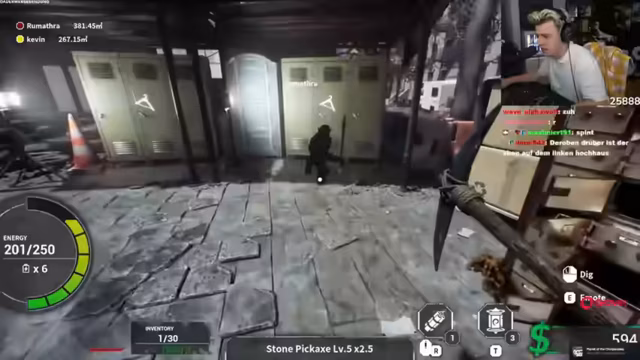 01:52:13Die Streamer beginnen in einem Spiel, in dem sie mit einer Schaufel nach unten graben müssen, um Ressourcen wie Geld und Gestein zu sammeln. Es wird eine Diskussion über die Spielmechanik gestartet, da man jede einzelne Aktion separat ausführen muss, anstatt gedrückt halten zu können. Sie entdecken ein Leaderboard, das den Wettbewerbscharakter unterstreicht, und die ersten 15 Dollar werden verdient. Die grundsätzliche Frage nach Sinn und Storyline des Spiels wird aufgeworfen, da das Spielprinzip lediglich aus dem Ausheben eines Loches in der Innenstadt von New York besteht.