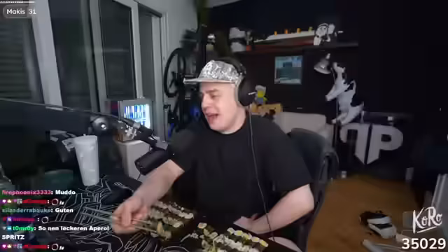 02:14:50Der Spieler bestellt spontan 100 Makis für eine Challenge und wettet mit Basti, dass er es schafft. Die Wette betrifft 10.000 Euro für Charity, aber der Spieler muss einige Sorten überspringen, da er kein Fleisch isst und Paprika in Sushi ablehnt. Während des Streams wird die Bestellung aufgegeben und die Bedingungen der Wette besprochen. Der Streamer ist motiviert, die Challenge zu bestehen, während er nebenbei weiter im spielt.