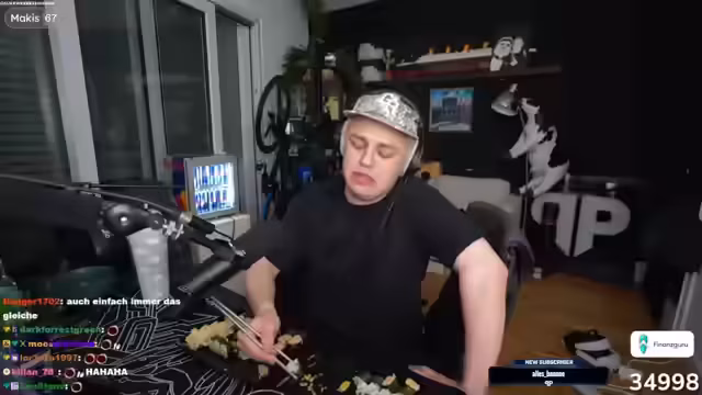 03:33:24Ein neuer Musiker namens DJ Hunde Friedhof wird vorgestellt, der in Thailand Pilze pflückt und Musik macht. Es wird über spirituelle Veränderungen nach Thailand-Reisen gesprochen. Der Streamer genießt seinen McFlurry und es wird über die passive Aggressivität von Kevin gescherzt. Eine Diskussion über WoW kommt auf, falls Basti zusagt. Der Streamer zählt seine restlichen Markis und es wird über einen Zuschauer gewitzelt, der jeden Marki nachzählt. Es wird über Giveaways am Anfang des Streams gesprochen und warum der Streamer diese macht. Ein Zuschauer erzählt von seinem Meet & Greet-Gewinn bei Make-A-Wish. Der Streamer schaut auf seine Linie und es wird über die Anzahl der gegessenen Markis diskutiert. Der Streamer erklärt, warum er trotz Reichtums und Berühmtheit so viele Markis isst.
