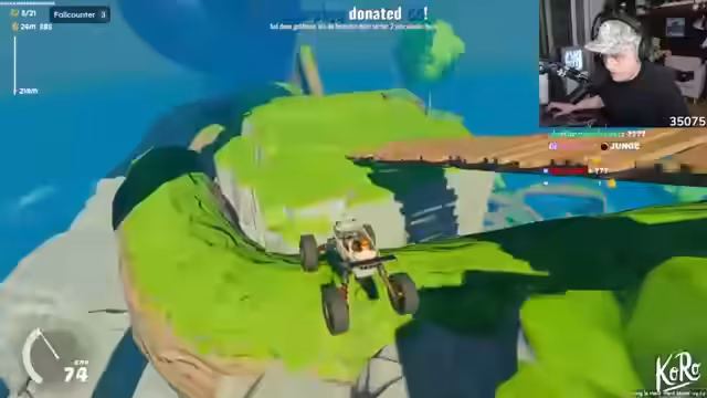 01:37:56Der Streamer passt sein Fahrzeug mit Spoilern und Auspuffanlagen an. Er entscheidet sich, doch für Skins zu spielen, obwohl er es zuvor ausgeschlossen hatte. Er entdeckt eine neue Mechanik, bei der er anscheinend an Wänden hochfahren kann. Er stellt fest, dass es in dem Spiel sowohl einfache als auch riskante Wege gibt und entscheidet sich meistens für die riskanteren. Er sammelt eine Kappe als Skin ein und spielt das Spiel im härtesten Modus. Er nimmt einen neuen Fallschirm mit. Er überlegt, wie sehr er auf die Skins achten soll und wie das Trampolin funktioniert. Er sammelt Style Punkte und muss einen Skin holen.