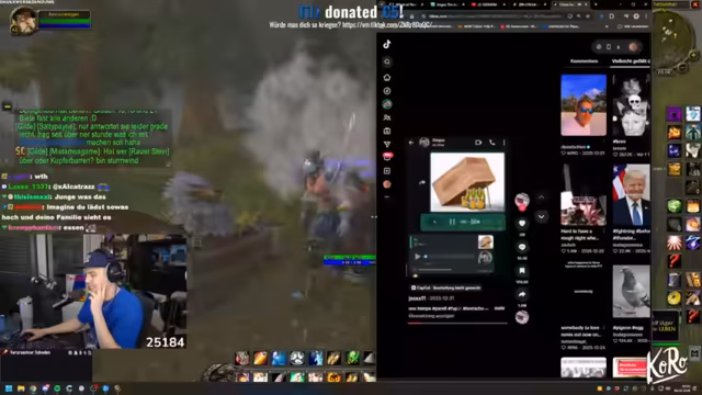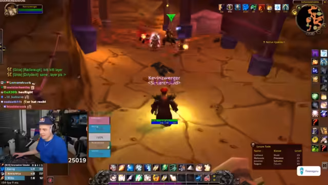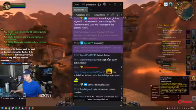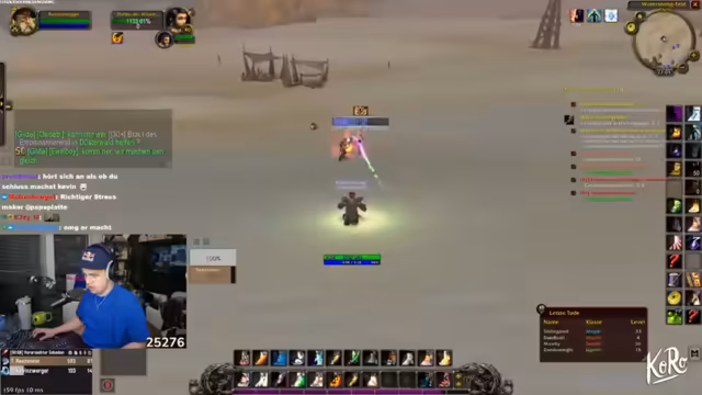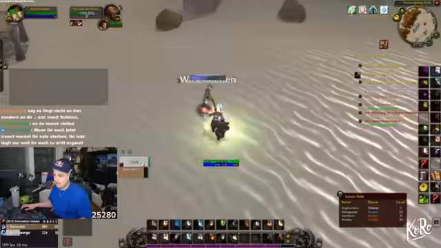04:17:15Der Streamer wechselt das Thema zu World of Warcraft und beschreibt, wie er mit seiner Gilde questet. Es kommt zu kritischen Momenten, in denen Charaktere sterben, was zu großer Anspannung im Stream führt. Die Gilde beschließt, gemeinsam weiterzuspielen, auch wenn es zu Verlusten kommt. Der Streamer ist äußerst motiviert und versucht, die Moral der Gruppe zu halten. Er organisiert die Gruppe und versucht, das Tempo des Spiels aufrechtzuerhalten. Dies zeigt den Zusammenhalt der Gilde und die Leidenschaft für das Spiel.