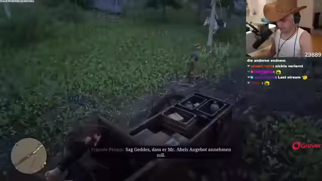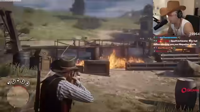 05:17:17Der Streamer gibt auf, das Tagesziel von 85 % Spielfortschritt zu erreichen und konzentriert sich stattdessen darauf, den Epilog von Red Dead Redemption 2 zu durchspielen. Während des Spiels kommt es zu dramatischen Momenten wie dem Tod des Pferdes Rachel. Nach einem Zwischenfall, bei dem versehentlich ein NPC verbrannt werden soll, muss der Streamer den Zustand des Spiels prüfen und bemerkt, dass der Fortschritt in späteren Spielteilen nicht linear verläuft.