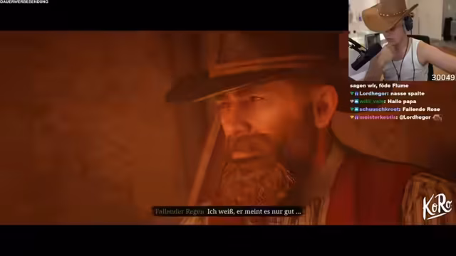 02:24:32Der Streamer stößt auf eine kulinarische Enttäuschung, als er statt Reis irgendein indisches Gericht namens Reiter serviert bekommt. Er kritisiert daraufhin Dutchs unbändigen Geldgier, die er als Hauptmotiv für die aktuellen Handlungen der Gruppe ansieht. Zudem ärgert er sich über eine banale Nebenquest und stellt die Authentizität einer Charaktereigenschaft in Frage, während der Chat über verschiedene Begriffe wie Grog und Stroh diskutiert.