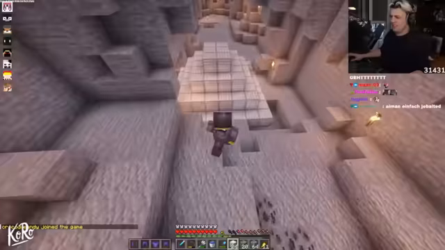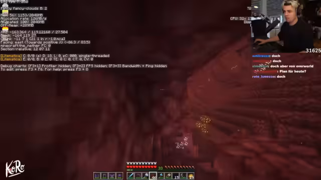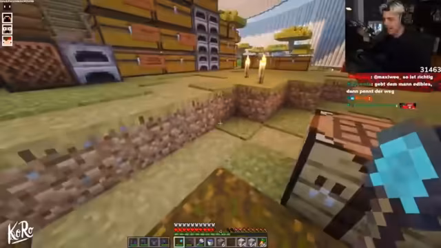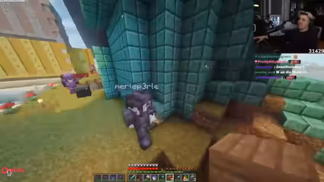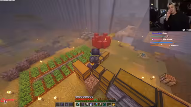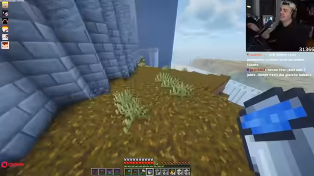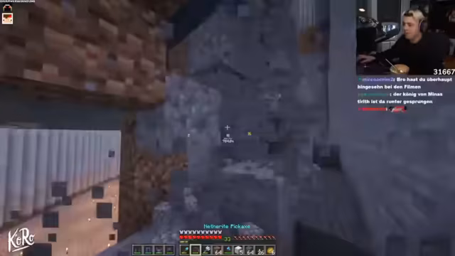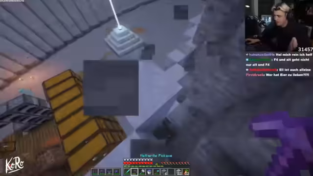 01:30:19Der Streamer und sein Begleiter begeben sich in den Nether, wobei der Streamer scherzhaft aufgefordert wird, dort ein Bett zu platzieren und zu schlafen, um seinen Spawnpoint zu setzen. Sie besuchen eine XP-Farm, die dem Streamer gehört, obwohl er sie als 'Heikos XP-Farm' bezeichnet und scherzt, dass 'was meines ist auch sein und was seines ist auch mein'. Es wird über die Effizienz der Farm und die Notwendigkeit von 'Sweeping Edge' auf dem Schwert diskutiert. Der Streamer beschädigt versehentlich Heikos Base mit TNT, was er als 'gut gesaved' bezeichnet. Anschließend scheren sie Merles Schafe und werfen die Wolle weg, mit der Bemerkung 'Scheiß auf die Umwelt'.