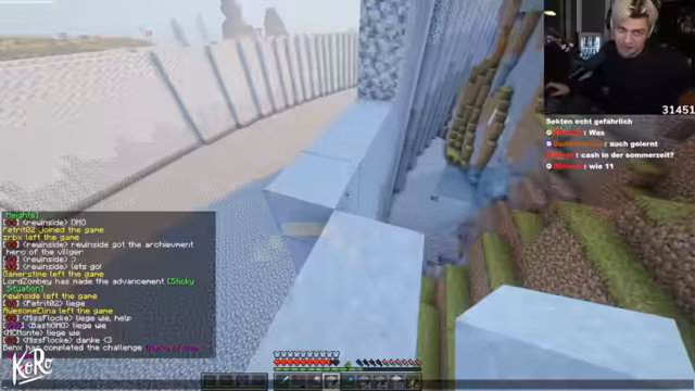 00:13:45Der Streamer kündigt den fünften Tag von Craft Attack an, bei dem das Bauprojekt Minasterid fortgesetzt wird. Es handelt sich um eine Stadt im Stil von Herr der Ringe mit einer großen Steinschneise, die gestern mit Wasser getestet wurde und sehr gut aussieht. Das Ziel ist es, die Schneise weiter zu formen. Er ist gespannt auf die Ergebnisse der Nachtschicht, die den Auftrag hatte, im Nether zu terraformen, da dieser nun aktiviert ist und Beacons verfügbar sind. Nach anfänglicher Enttäuschung über die unsaubere Arbeit der Nachtschicht, bei der eine Wand vergessen und gefuscht wurde, wird Veto, ein Mitglied der Nachtschicht, in einen Voice Chat eingeladen, um die Mängel zu klären. Es entsteht eine humorvolle Diskussion über die wiederholten Fehler der Nachtschicht und die daraus resultierenden Konsequenzen.