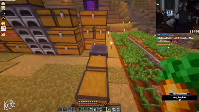06:07:54Es wird das aufwendig gestaltete Lager vorgestellt, an dem lange gearbeitet wurde. Es handelt sich um ein unsortiertes Lager, das bewusst im Oldschool-Stil gehalten ist und keine automatische Sortierung besitzt. Besonders hervorgehoben wird die Verwendung von 'Brown Glazed Terracotta' und das Design mit Kolben, das als 'crazy' und 'sehr gelungen' beschrieben wird. Anschließend wird ein 'richtiger Ausgang' präsentiert, der sich als Röhre entpuppt und durch einen Knopfdruck aktiviert wird. Dieser geheime Ausgang erinnert an 'Perry das Schnabeltier' und seine unauffälligen Auftritte. Die Mechanik des Ausgangs, der sich nach Gebrauch wieder schließt, basiert auf einer Zeitsteuerung und wird als 'sehr geil' empfunden. Heiko, der Techniker, wird für seine Arbeit an dieser Konstruktion gelobt.