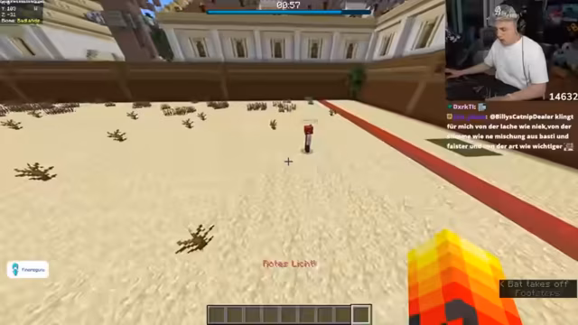 02:52:08Lollinger, der sich früher als 7-8 in Minecraft PvP eingestuft hat, startet mit einem Water Bucket MLG. Während des Spiels stürzt er jedoch von einer Höhe und verliert das Spiel. Obwohl er nicht gewinnt, wird ihm eine positive Erfahrung garantiert und es wird erwähnt, dass der Discord-Chat mit anderen Teilnehmern sehr lustig war. Der Streamer bedauert den Unfall, betont aber, dass das Mitmachen schon eine Belohnung ist.