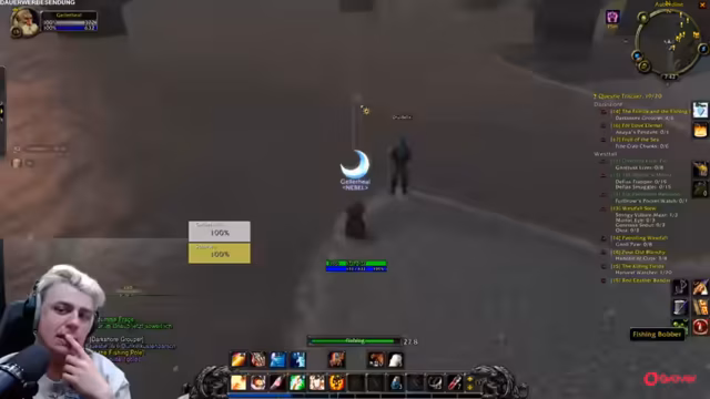 04:48:58Die Gruppe spielt Hardcore World of Warcraft und muss ihren Questlog managen, um Platz für neue Quests zu schaffen. Nachdem sie Quests in Sturmwind abgegeben haben, müssen sie alle Quests abbrechen, um im Log Platz zu schaffen, da die Obergrenze bei 20 Quests liegt. Während Wieland mit anderen Spielern interagiert, hat er technische Probleme mit seiner Maussteuerung, was dazu führt, dass er sich nicht stummschalten kann. Die Gruppe koordiniert ihre weiteren Schritte, um in die Region Westphal zu gelangen und dort Quests anzunehmen.