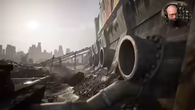 05:06:56Der Streamer taucht in eine düstere, unterwasserähnliche Umgebung ein, die ihn an Final Fantasy 7 und gruselige Sci-Fi-Filme wie Alien erinnert. Er analysiert die apokalyptische Szenerie mit eingebrannten Schatten und vermutet ein natürliches Katastrophenereignis. Die umgebenden Rohre und Strukturen faszinieren ihn, wobei er besonders die Tintenflecken an der Wand als brillante Idee lobt. Die düstere Stimmung wird als angenehm und atmosphärisch beschrieben, auch wenn er teilweise an genretypische Horrorelemente denkt.