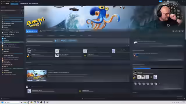 02:15:26Der Streamer beginnt mit der Installation und den grundlegenden Einstellungen von 'Darwin's Paradox'. Er konfiguriert die Helligkeit, um das sogenannte 'Photo Sensitivity Warning'-Pattern korrekt erkennen zu können, und wählt einen der beiden exklusiven, kostenlosen Kosmetik-Skins aus, die ihm durch den Vorbestellungsbonus zur Verfügung stehen. Nach den ersten Minuten im Spiel zeigt er sich beeindruckt von der visuellen Darstellung der Unterwasserwelt, die er als 'wunderschön' und 'yummy' bezeichnet, und navigiert seinen Oktopuscharakter durch diese.