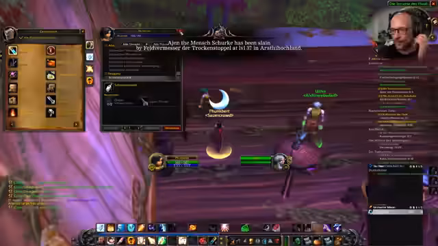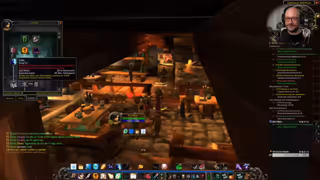 00:25:24Ein Zuschauer fragt nach einem größeren Gilden-Chat-Interface. Der Streamer recherchiert im Spiel und im Chat, findet aber nur den Standard-Chat. Er kritisiert Zuschauer, die falsche oder unklare Informationen verbreiten, und klärt, dass ein solches Interface nur in neueren WoW-Versionen oder durch Add-Ons verfügbar ist. Anschließend geht er auf verschiedene Fragen und Bemerkungen aus dem Chat ein, darunter Themen wie gesundheitliche Risiken durch Feuerwerk, die Aufzucht von Haustieren und allgemeine Spielemechaniken.
