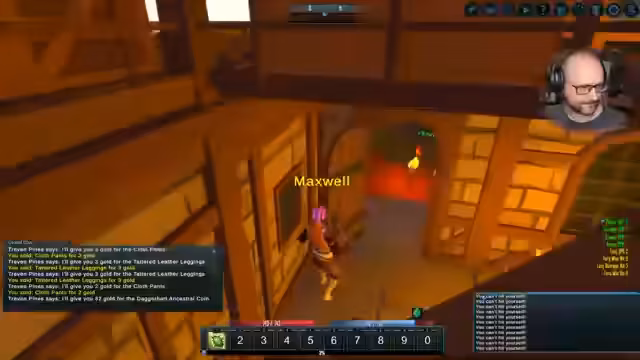07:49:06Nachdem die Partei die Tutorial-Insel verlassen hat, erreichen sie die Hauptinsel 'Erendshore'. Der Streamer erkundet die erste Stadt, 'Port Azure', und besucht verschiedene Händler für Waffen, Rüstungen, Zauber und andere Gegenstände. Er äußert Begeisterung über die lebendige Atmosphäre des Ortes und das Vorhandensein eines Auktionshauses, auch wenn der Handel mit NPCs noch eingeschränkt ist.
