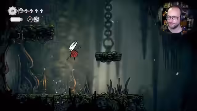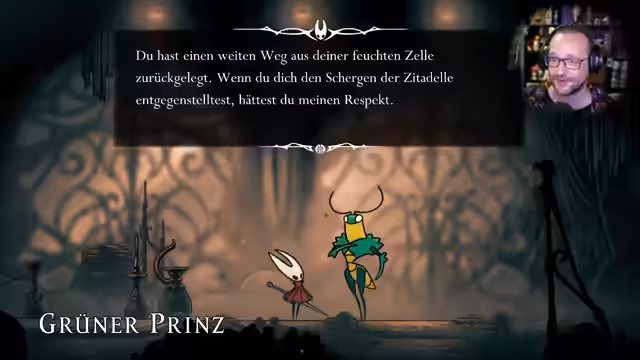 06:10:27Es wird festgestellt, dass keine Karte vorhanden ist. Der Streamer spricht über das Spiel Landscape Torment, das ihm die Augen für Story, Charaktere, Tiefgang und Weltenaufbau geöffnet hat. Es wird betont, dass man Hollow Knight nicht gespielt haben muss, um alles zu verstehen. Ein Raid von Claudia on Wheels wird erwähnt. Es wird eine geheime Wand entdeckt und ein Erinnerungsmedaillon gefunden. Es wird vermutet, dass man sich in der Nähe der Zitadelle befindet. Es wird erwähnt, dass man drei oder vier Erinnerungsmedaillons hat und unsicher ist, bei welchem Wappen man sie einsetzen soll. Der Streamer hofft, Chakra zu finden und fühlt sich im Platforming relativ wohl. Es wird ein Chakra-Ring entdeckt, aber der Streamer weiß nicht, wie er nach oben kommen soll. Es wird festgestellt, dass es viele Gebetsperlen gibt, aber nicht mehr genug, um weiterzumachen. Der Streamer kommt in einem Gebiet nicht weiter und beschließt, wieder nach unten zu gehen. Es wird festgestellt, dass Team Sherry es geschafft hat, jeden einzelnen Gegner auf seine Art und Weise richtig nervig und lästig zu gestalten. Der Streamer findet die Anzahl der Fluggegner problematisch, da diese immer wieder von einem wegfliegen. Es wird der aufgeladene Schlag ausprobiert und festgestellt, dass er drei Schaden macht.