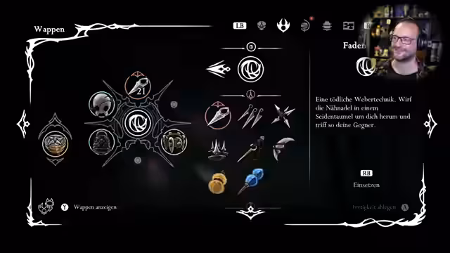 06:23:48Es wird überlegt, ob sich der Fokusschlag bei den einzelnen Wappen unterscheidet. Eine geheime Wand wird entdeckt und eine schwere Rosenkranzperlenhalskette gefunden. Die Mutterweberin hat sich gemeldet. Es wird festgestellt, dass ein Angriff etwas zum Aufladen braucht. Ein Gegner saugt die Seide weg und nutzt sie für einen eigenen Angriff. Es wird über die fliegenden Gegner geflucht. Es wird festgestellt, dass die fliegenden Gegner kompensiert werden könnten, wenn man seine Fernkämpfe zielen könnte. Der Streamer mag das Spiel, aber es ist nicht alles perfekt. Es wird eine große Glocke entdeckt. Die Reise nach Ventrica wird aufgrund unerträglich vieler Verletzungen und nicht hinnehmbarer Todesfälle ab sofort allen untersagt. Es wird vermutet, dass dies ein alter Text ist. Der Streamer ist leicht angegeilt von dem Gebiet. Es wird festgestellt, dass es hier eine Bank zum Hinsetzen gibt, was keinen Sinn ergibt. Der grüne Prinz wird getroffen. Es wird eine heiße Quelle entdeckt, die wie eine Dusche wirkt. Es wird eine kaputte Kette gefunden, die einen Gang aufgemacht hat. Der Streamer hört eine Stimme und ein Lachen auf der anderen Seite. Es wird vermutet, dass es sich um Lays, Latze handelt. Es wird ein neuer Lace gewünscht. Der erste Kampf gegen sie wird gemocht. Es werden wieder zwei Schadensdinger entdeckt. Der Streamer heilt sich und ist gespannt. Seine Frau kommt nach Hause.