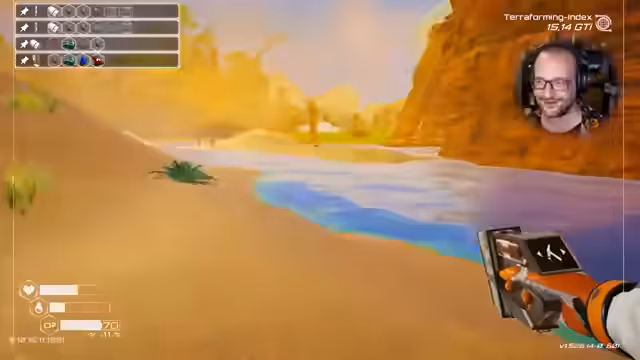 07:16:40Nach der Silksong Session wechselt der Stream zu Planet Crafter. Es wird kurz über den veränderten Startbildschirm des Spiels gesprochen. Ein Achievement wurde freigeschaltet ('Rette die Hälfte der verlorenen Fahrlohmflöhe'). Es wird ein neues DLC mit einem neuen Planeten angekündigt. Der Streamer äußert seine Begeisterung für das Spiel und lobt die Entwickler. Planet Crafter wird als entspannendes Wohlfühlspiel beschrieben, bei dem Ressourcen von fremden Planeten geplündert werden. Der Wunsch wird geäußert, am Ende des Spiels auf dem Planeten bleiben zu dürfen, da er dem Streamer ans Herz gewachsen ist. Der Planet wird liebevoll 'Planetenbert' genannt. Es wird erwähnt, dass der erste Planet im Spiel 'Primus' heißt. Es wird beschlossen, Dreierräume zu bauen und viele Raketen ins All zu schicken, um die Terraforming-Werte zu erhöhen.
