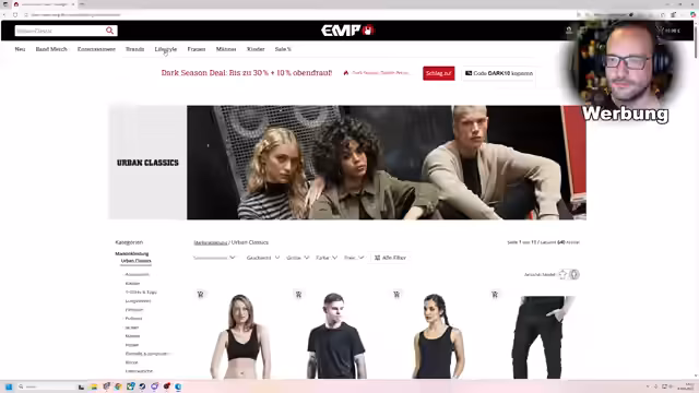 02:16:02Es wird die Funktionalität des Gutscheincodes "Funk" im EMP-Onlineshop getestet, wobei festgestellt wird, dass er auch auf bereits reduzierte Artikel angewendet werden kann, was zu einer zusätzlichen Ersparnis führt. Der Streamer bedankt sich bei EMP für die Partnerschaft und die Möglichkeit, den Code anzubieten. Er erklärt, dass EMP eine lange Tradition hat und früher vor allem für punkige und Gothic-Kleidung bekannt war, das Sortiment aber mittlerweile erweitert wurde. Er lobt die Qualität von Urban Classic-Kleidung, die er seit Jahren trägt, und erwähnt, dass er seit kurzem EMP-Partner ist. Abschließend werden bequeme Schuhe vorgestellt, die er im EMP-Shop erworben hat, und es wird auf eine frühere EMP-Bestellung verwiesen, bei der er Unterhosen und Socken gekauft hat.