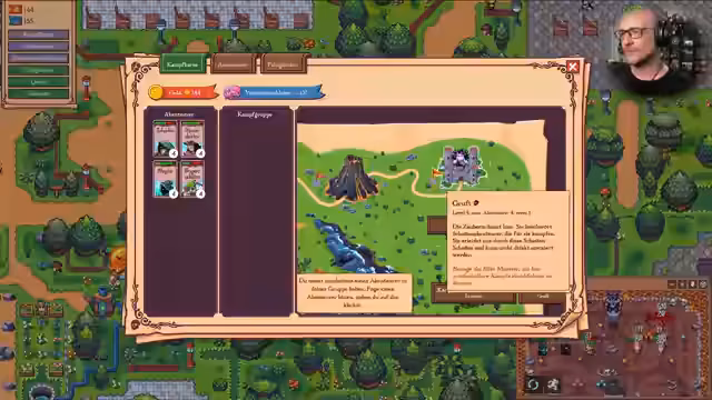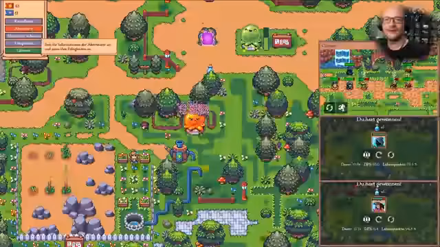 02:10:25Nach der Einführung beginnt das tatsächliche Gameplay. Der Streamer baut zunächst eine kleine Gilde und heuert einen ersten Abenteurer, eine Schurkin, an. Er erkundet die Kampfsystem- und Menüfunktionen und vergleicht das Spiel visuell positiv mit einem Gameboy-Spiel. Nachdem er seinen ersten Kampf gewonnen und einen Trank gefunden hat, baut er einen Laden, um diesen zu verkaufen. Das Gameplay erweist sich als semi-auto-idle, bei dem Kämpfe automatisch ablaufen, während der Spieler andere Aspekte wie den Aufbau der Stadt manuell steuert.