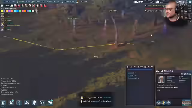 03:40:51Der Streamer wechselt das Spiel und kehrt zu 'Going Medieval' zurück. Hier müssen sich die Siedler auf einen bevorstehenden Angriff vorbereiten, der durch die Aufnahme eines neuen Charakters ausgelöst wurde. Ein neues Mitglied, Kelrugem, wurde gerettet, ist aber verletzt und muss versorgt werden. Gleichzeitig steht die Siedlung unter Druck, da eine feindliche Gruppe von Bogenschützen und Marodeuren in knapp einem Tag eintreffen wird.