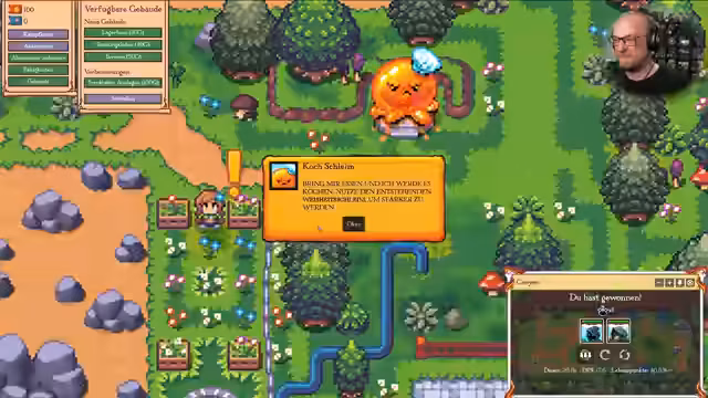 02:20:01Zu Beginn des Stream-Ausschnitts wird das Spielprinzip des Müllschleimers erklärt, der automatisch Gegenstände vom Boden frisst, die sonst verschwunden wären, und kritische Treffer erzielen kann, um mehr Gold zu generieren. Ein Arbeiter verfüttert automatisch vollständige Gegenstände an den Schleimer, um Staus zu verhindern. Daraufhin wird der erste Abenteurer angeheuert und die Farm in Angriff genommen, auf der Nutzpflanzen angebaut werden. Ein Kochschleim kocht die geernteten Früchte, um Weisheitsschleime zu erhalten, die zum Leveln der Abenteurer genutzt werden.